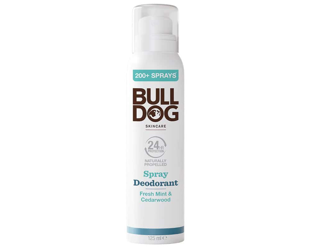 With a three-month supply of fresh and dry pits per can, we can’t argue with the 24-hour protection from Bulldog’s deodorant spray. Available in the Original and long-lasting scents of Bergamot & Sandalwood and Fresh Mint & Cedarwood, the canisters are also propelled by nitrogen, not damaging aerosol.