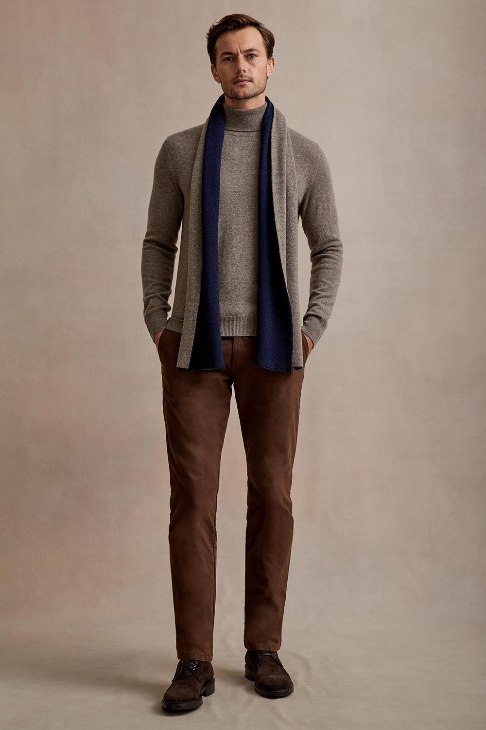 Just remember to look for a range of textured fabrics in your look. Think leather, moleskin, cotton twill or lambswool – materials that add a bit of visual interest, keeping your outfit from appearing too flat.